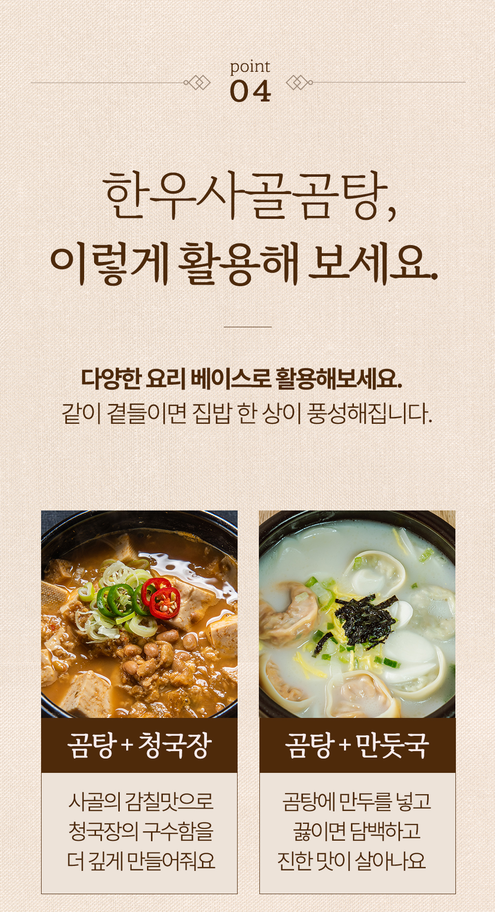물 대신 한우사골곰탕을 넣어 더 깊어진 진국 청국장