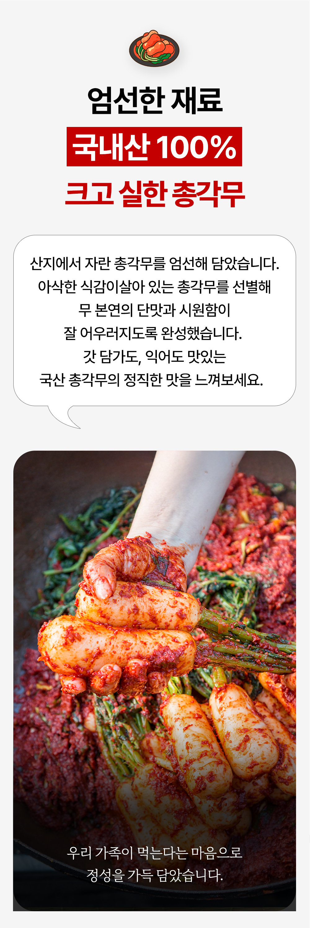 총각무+비법양념으로 감칠맛 UP! 정성을 가득 담아 만들었습니다