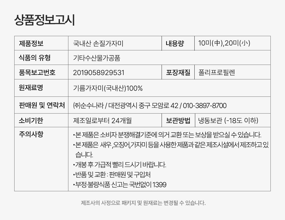 급속냉동으로 싱싱한 손질가자미의 부드러운 살을 느껴보세요!