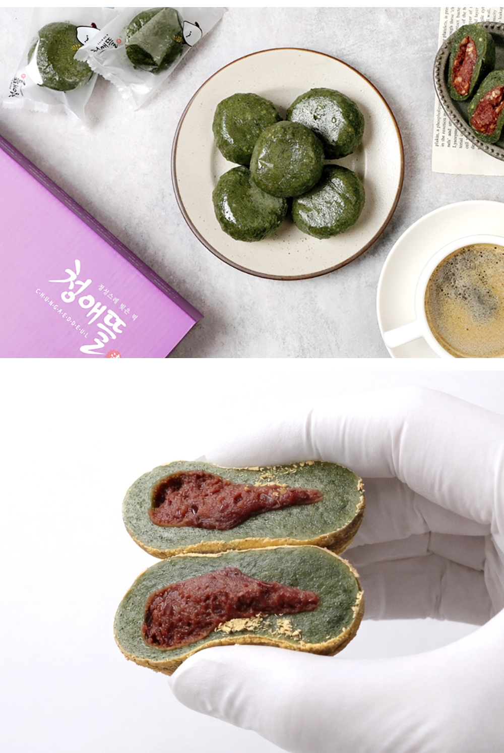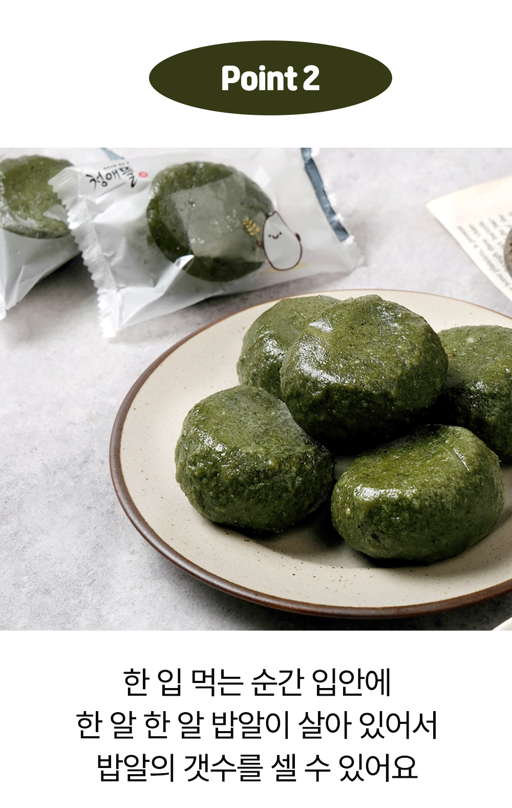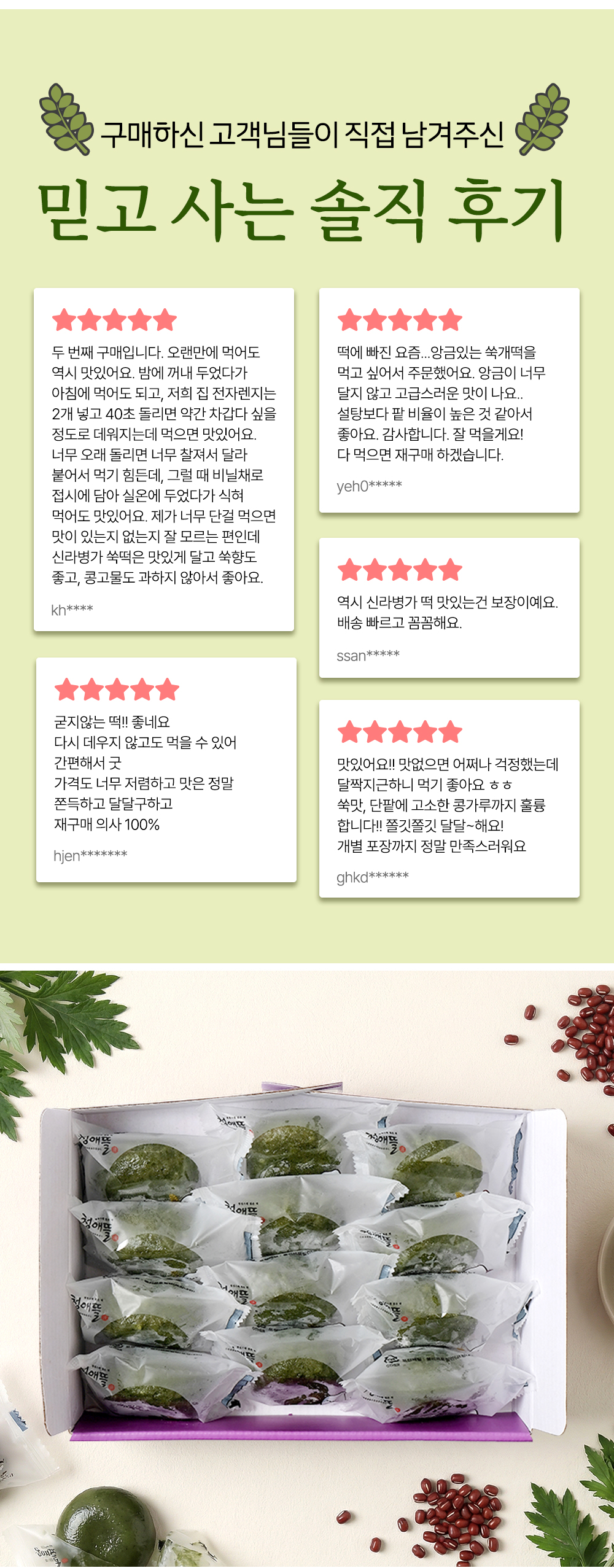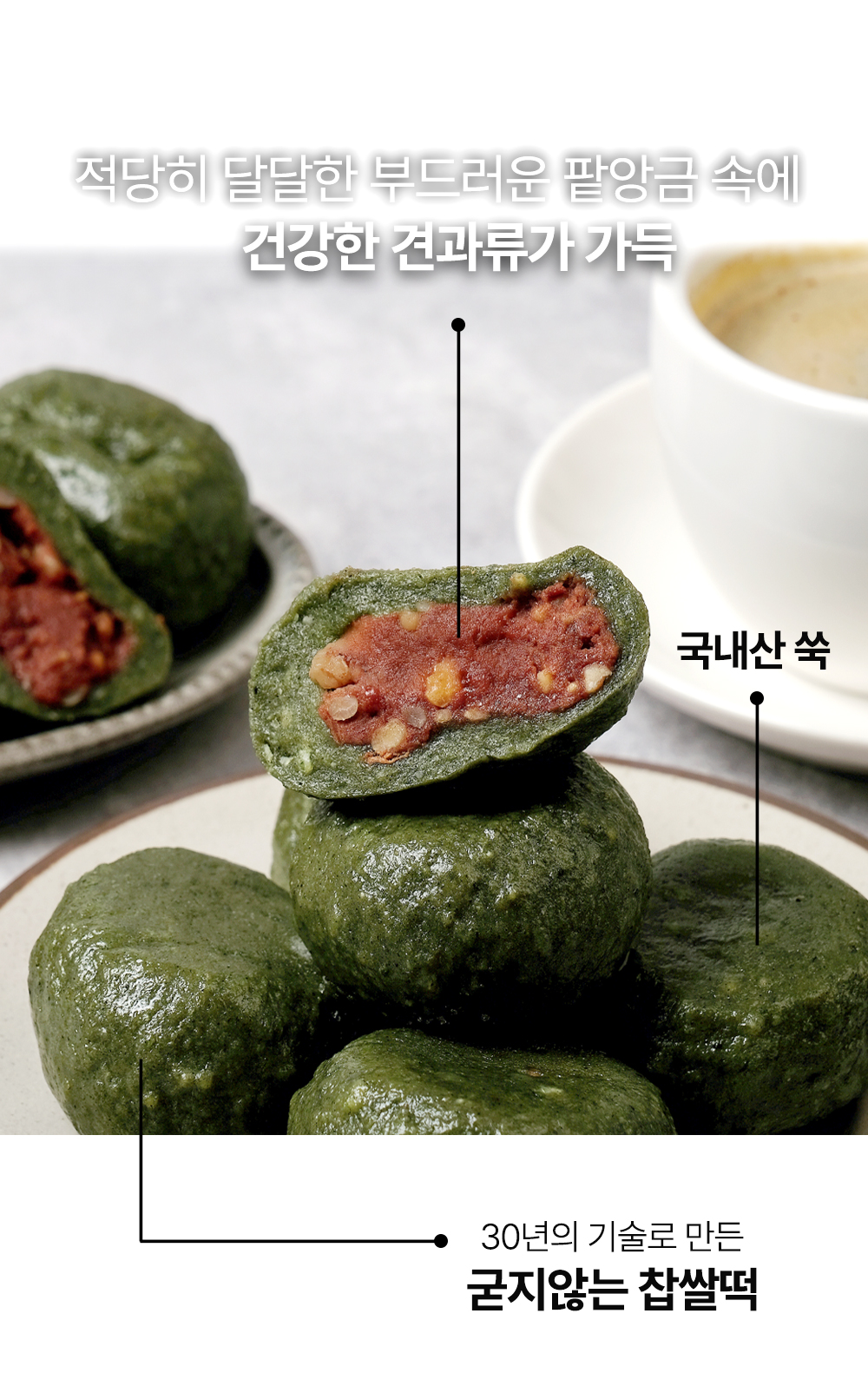 100% 국산 찹쌀과 쑥으로 만들어 더-욱 쫀득! 깊고 진한 쑥 향도 가득!