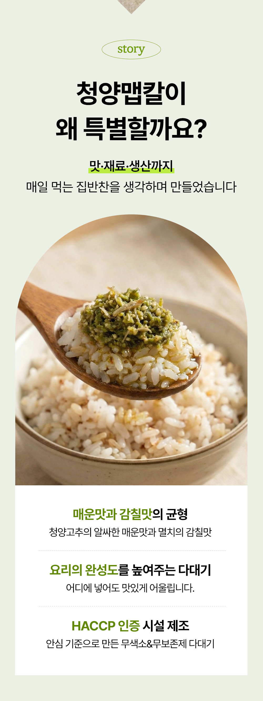 마른 멸치와 개운한 청양고추의 환상적인 만남! 밥이랑 참기름에 비벼먹기만해도 밥 한공기 뚝딱!