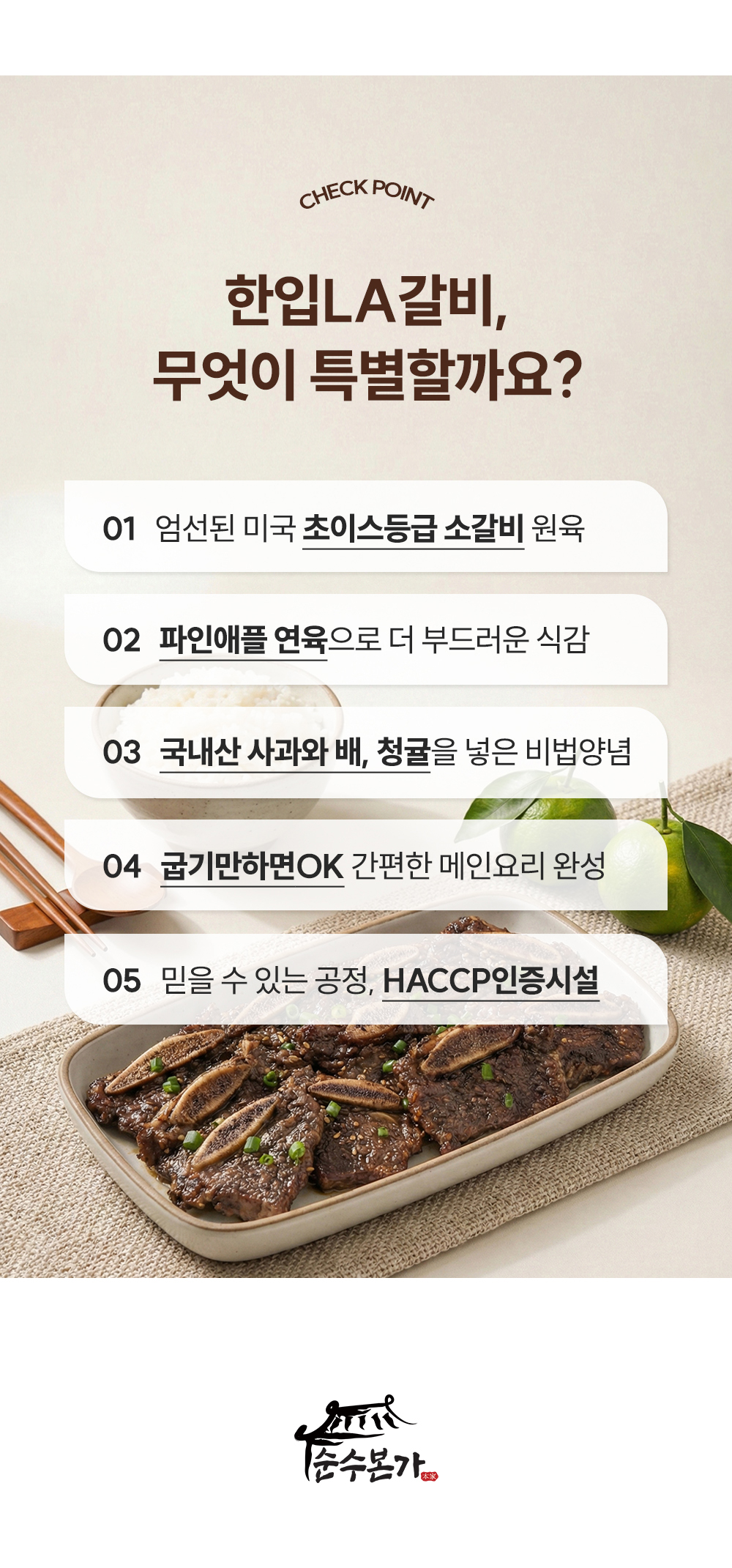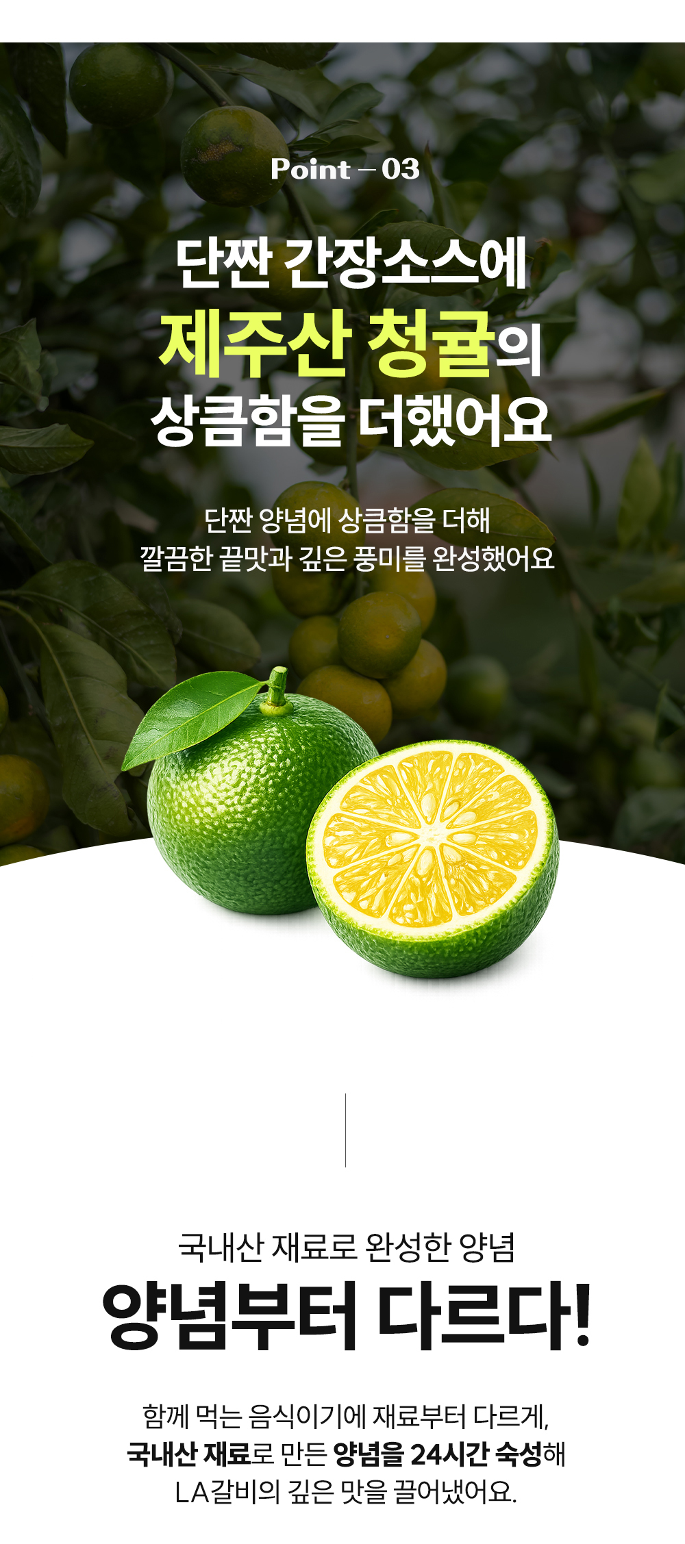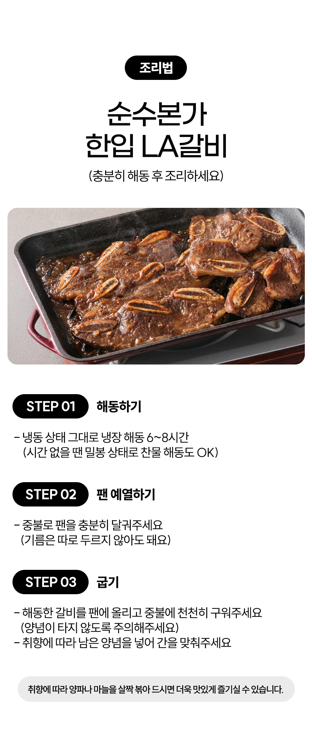 엄선된 초이스 등급 LA갈비 원육과 단짠 간장소스에 청귤의 상큼함을 더한 비법 양념소스로 만든 특별한 LA갈비를 집에서 간편하게 즐겨보세요