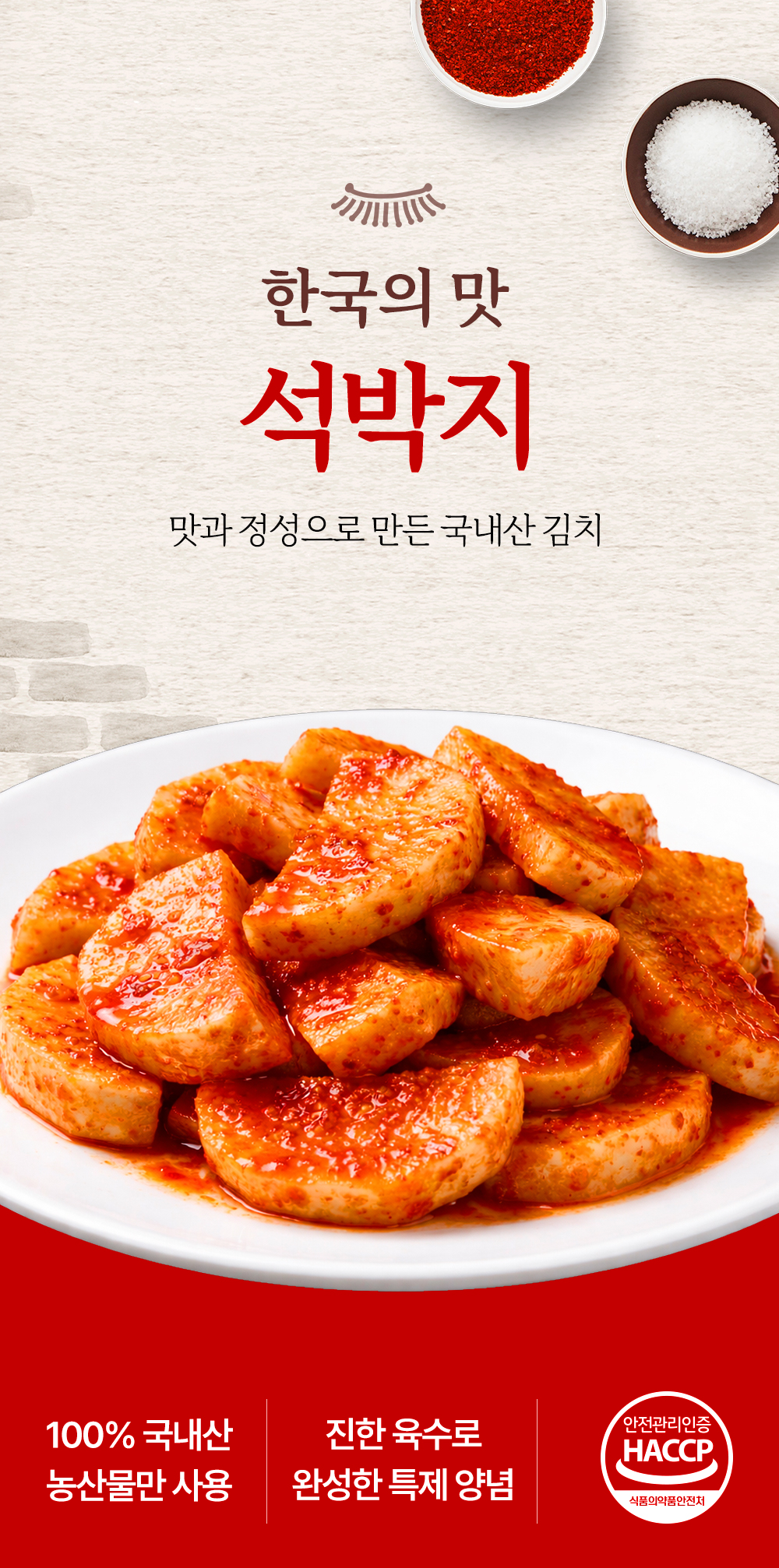 아삭하고 시원한 무의 감칠맛과 단맛 살린 석박지를 만나보세요